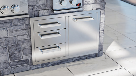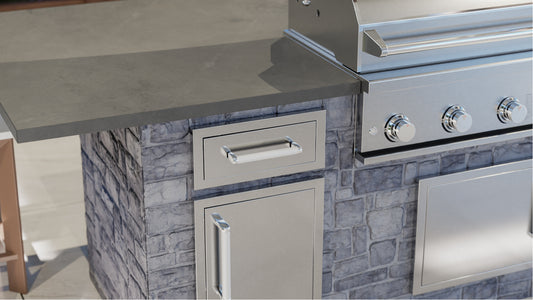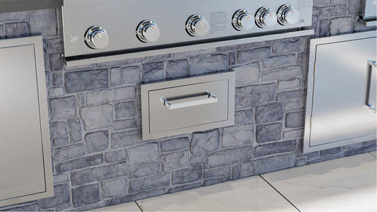 The Burford collection comprises of three premium stainless steel BBQ heads, complemented by a variety of built-in drawers, doors, bins and side burners to match. The range allows you to create a bespoke outdoor kitchen, tailored to suit all spaces and sizes by simply picking the units you need!