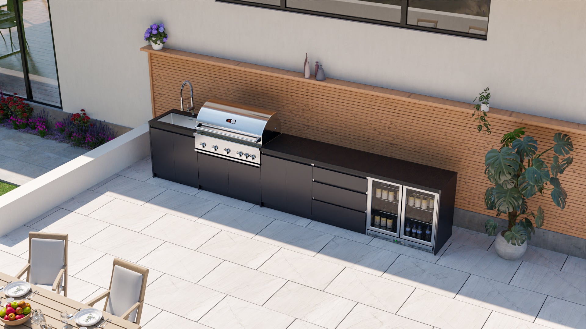 - A choice of the amazing black or silver Burford BBQ as the centrepiece